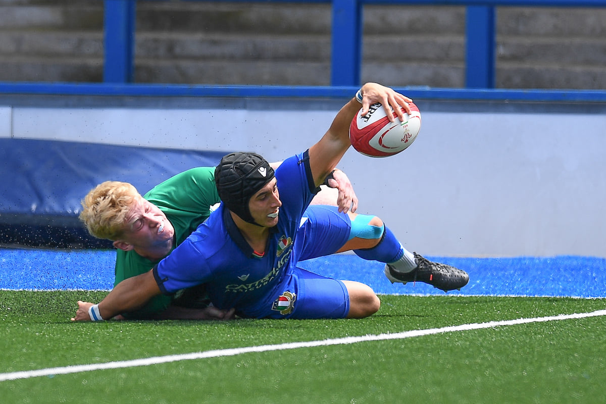 Una nuova brillante prestazione per l’Italia under 20 nel ‘Torneo delle Sei Nazioni’ di categoria ed un’altra splendida meta firmata da Simone Gesi, il talentuoso trequarti ala labronico, classe 2001, nato e cresciuto (sportivamente parlando) nel Livorno Rugby e protagonista in prestito nell’ultima annata in forza al Colorno, nel Top10. In questo mercoledì pomeriggio, a Cardiff, contro l’Irlanda, in piena lotta per vincere il prestigioso Torneo, gli azzurri hanno ceduto 30-23. I ragazzi di Brunello hanno colto il cosiddetto bonus-difesa (che come noto scatta in caso di sconfitta con un margine inferiore alle otto lunghezze) e dunque, dopo quattro giornate (una al termine) figurano in classifica a quota 7 punti. Gli azzurrini hanno chiuso il primo tempo con 11 punti di vantaggio, ma non sono riusciti a contenere, nella ripresa, la grande reazione dei verdi. Simone Gesi, che già aveva siglato una favolosa marcatura contro la Francia, ha segnato la prima delle tre mete della propria squadra. L’azione. È il 7’ e da 3’ l’Irlanda conduce 5-0. La palla, sulla linea di metà campo, giunge nelle mani del trequarti livornese che si inventa un attacco personale inarrestabile. La difesa irlandese è scoperta e sulla sua corsia di competenza (quella di sinistra) Gesi scatta e vola via, resistendo anche al ritorno dell’estremo Osborne. Meta sulla bandierina, che consegna il momentaneo 5-5. Gli azzurri allungano sul 23-12, con cui chiudono un primo tempo dagli altissimi contenuti. Nella ripresa, l’Irlanda cresce. All’Italia non basta l’orgoglio per respingere il veemente ritorno degli avversari. La sconfitta non cancella una prima frazione eccellente. Gli azzurrini hanno confermato di possedere grandi potenzialità. Ecco il comunicato completo sulla partita a cura di federugby.it