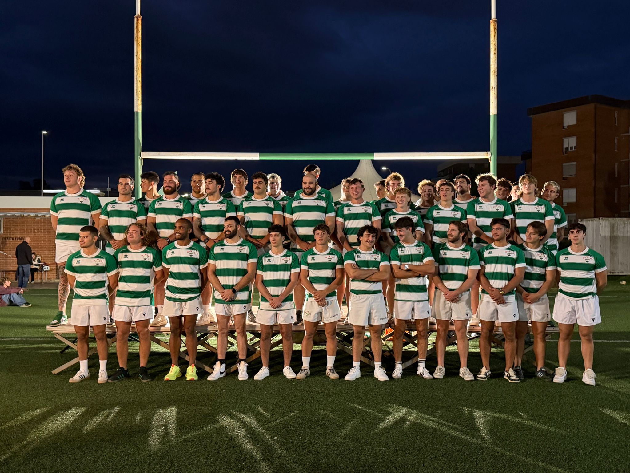 Per la riuscita dell’evento, è stata indispensabile l’opera di tanti instancabili volontari che si sono prodigati dietro le quinte. A loro, a questi sportivi autentici, attivi per preparare l’apprezzato ‘terzo tempo’, per allestire il palco e consentire, con la musica in sottofondo (‘Gente di mare’ il brano più gettonato…), di trascorrere una splendida serata, va il primo ringraziamento della società. La festa in questione, che si è consumata dalle 19:30 di questo ventoso sabato di inizio ottobre presso l’impianto ‘Maneo’ di via Settembrini, angolo via delle Margherite, ha permesso di celebrare in modo degno il ritorno in un campionato nazionale, atteso da 13 anni. L’Unicusano Livorno Rugby, dal prossimo 19 ottobre, giocherà nel girone 1 di serie A (in altre parole l’A1, il secondo campionato domestico). Il salto in un torneo tanto prestigioso è stato conquistato dopo lo splendide emozioni vissute nella scorsa stagione (girone 4 di A, in altre parole il girone di A2 del centro-sud), caratterizzata anche da una striscia record di 17 vittorie consecutive. Quella labronica è l’unica realtà toscana impegnata tra A Elite e A1 e giocherà il nuovo campionato con una rosa dall’età media davvero bassa, con l’intento di battagliare ed ottenere buoni risultati su ogni campo e contro ogni avversario. Formazione composta in modo pressochè esclusivo da livornesi di scoglio, rugbisticamente nati e cresciuti nella floridissima cantera biancoverde. Dieci le squadre al via del torneo di A1: al termine delle 18 giornate, le prime tre giocheranno i playoff per la promozione in A Elite. Non sono previste retrocessioni dall’A1 all’A2: nella stagione 2026/27 saranno 12 (e non dieci) le formazioni impegnate in ciascuno dei gironi di A. La festa di sabato sera ha consentito di ufficializzare il grande colpo, legato all’ingaggio di Mata Maxime Mbandà, classe 1993, ex Zebre, scudettato con il Calvisano nel 2014 e nel 2015 e capace di inanellare ben 29 caps con l’Italrugby: un terza linea che non ha bisogno di presentazioni e che è pronto a dare il massimo per la causa biancoverde. Ufficializzati pure gli innesti di Francesco Agnelli, classe 2006, dal Colorno e di Francesco Stefanini, classe 1993, proveniente dal Florentia. In più ufficializzato il ritorno in maglia labronica di Andrea Nannoni, classe 2003, protagonista nella scorsa annata in A Elite, nella Lazio. Nel corso della serata, simpaticamente condotta da Daniele Aspromonti, sono stati chiamati sul palco, allestito sotto la porta, lato sud, del campo ardenzino, tutti i giocatori in rosa, uno ad uno; assenti giustificati Christian Brasini e Jacopo De Rossi, impegnati in Coppa Italia, con la rappresentativa dell’Accademia FIR ‘Ivan Francescato’. Hanno preso la parola, tra gli altri, oltre al capitano Giacomo Gragnani, al presidente Giovanni Riccetti e al director of rugby Gianluca Guidi, anche Rocco Del Bono, Edoardo Mannelli e Antonio Tangredi, i tre giocatori-allenatori che, con compiti specifici, stanno affiancando lo stesso Guidi nella conduzione tecnica della squadra. Una squadra che con orgoglio vuole difendere questi storici colori biancoverdi ed un club che da quasi 100 anni (e più precisamente dal 1931) rappresenta la storia e l’eccellenza non solo sportiva della città. Al termine della cerimonia di presentazione, i presenti hanno consumato il ‘terzo tempo’, curato dai volontari. Il lungo elenco (41 giocatori) della rosa dell’Unicusano Livorno Rugby, chiamata, dal 19 ottobre (debutto a Verona, contro una delle ‘big’ del torneo) a giocare nel girone 1 di A: Francesco Agnelli (centro), Augusto Alessandri (pilone), Marco Andreotti (pilone), Saverio Bianchi (centro), Simone Bitossi (seconda linea), Christian Brasini (pilone), Lorenzo Caratori Tontini (seconda-terza linea), Tommaso Casini (ala), Alessandro Carbonella (seconda linea), Pietro Celi (apertura), Ranieri Chiti (seconda linea), Tito Daniele Chiesa (mediano di mischia), Leonardo Cristiglio (centro), Edoardo D’Ammando (mediano di mischia), Jacopo De Rossi (tallonatore), Rocco Del Bono (apertura), Tommaso Ficarra (pilone), Filippo Fedi (ala), Enrico Freschi (terza linea), Luigi Freschi (terza linea), Tommaso Gambini (seconda linea), Edoardo Giammattei (tallonatore), Leonardo Giunta (estremo), Giacomo Gragnani (seconda linea), Diego Ianda (centro), Matteo Sergio Lottini (terza linea/ala), Edoardo Mannelli (terza linea), Giorgio Mannucci (seconda/terza linea), Mata Maxime Mbandà (terza linea), Tazio Meini (ala), Andrea Nannoni (tallonatore), Emanuele Piras (terza linea), William Piram (ala), Filippo Quarta (tallonatore), Cristiano Raffo (terza linea), Andrea Rossi (mediano di mischia), Francesco Stefanini (terza linea), Antonio Tangredi (pilone), Jacopo Tomaselli (mediano di mischia), Leonardo Tosi (pilone), Gregorio Tori (seconda linea).