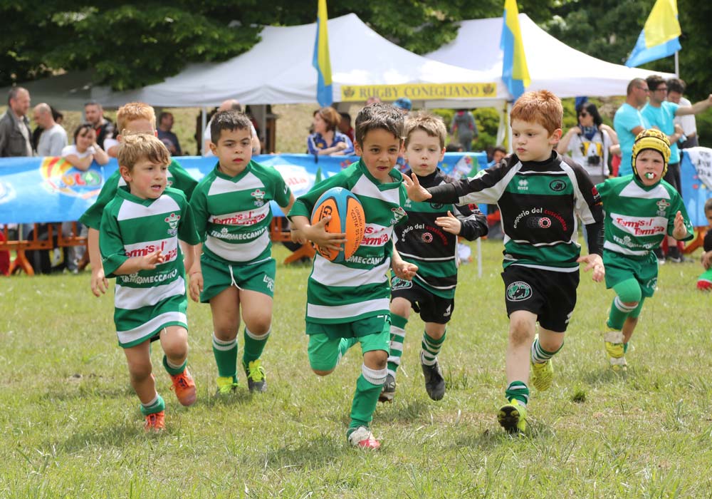 Un’esperienza di vita e di sport indimenticabile. Una trasferta ricca di forti emozioni e di grandi risultati. I piccoli-grandi atleti del Livorno Rugby under 6 si sono ritagliati un ruolo da grandi protagonisti nella 39° edizione del torneo ‘Città di Treviso’, di gran lunga la manifestazione più importante a livello giovanile in Italia. Nella categoria, ben 69 le società al via. I biancoverdi hanno chiuso il prestigiosissimo evento (disputato sui campi della Ghirada il 6 e il 7 maggio) al settimo posto. Soddisfattissimi i bambini labronici, i loro allenatori-educatori Daniele Aspromonti e Federico Muzi e i genitori presenti sugli spalti. Lacrime di gioia hanno solcato i visi di grandi e piccoli. Nel proprio girone eliminatorio, composto da sette squadre, solo successi per i livornesi. In rapida successione, nelle gare giocate sabato 6, gli scatenati biancoverdi hanno battuto il Piave Rugby 7-1 (ogni meta un punto), il Vittorio Veneto ‘B’ 10-3, l’Experience School L’Aquila ‘B’ 4-1, il Benetton Treviso ‘A’ 7-2, il Selvazzano 8-0 e il Lainate ‘A’ 5-0. Prima piazza a punteggio pieno e qualificazione in carrozza nel girone delle migliori. Tali (fortissime) dieci squadre (prime nei propri gironi eliminatori) sono state a loro volta divise in due raggruppamenti da cinque. Nella seconda fase, disputata domenica 7, il Livorno Rugby ha perso 2-3 con il Verona, ha battuto 4-1 il Parma Junior, per poi cedere con il Paese 1-2 ed il Tarvisium ‘A’ 0-6.